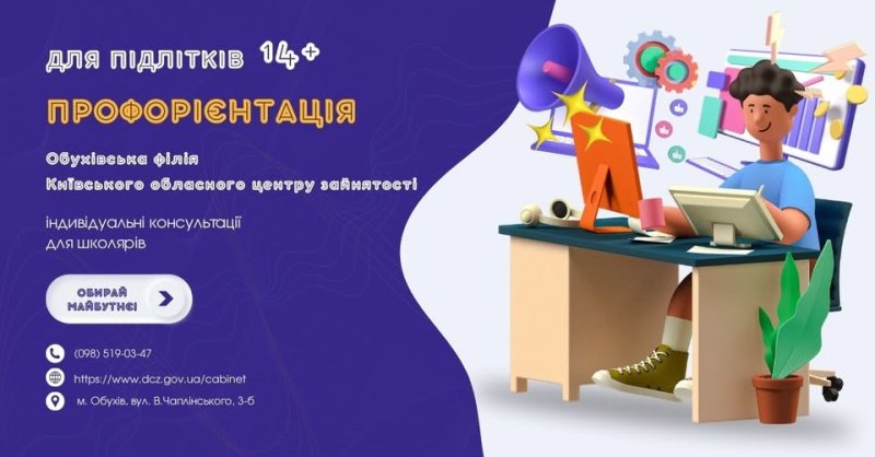 Запрошуємо на індивідуальні консультації з профорієнтації до Обухівської філії Київського обласного центру зайнятості! 💡