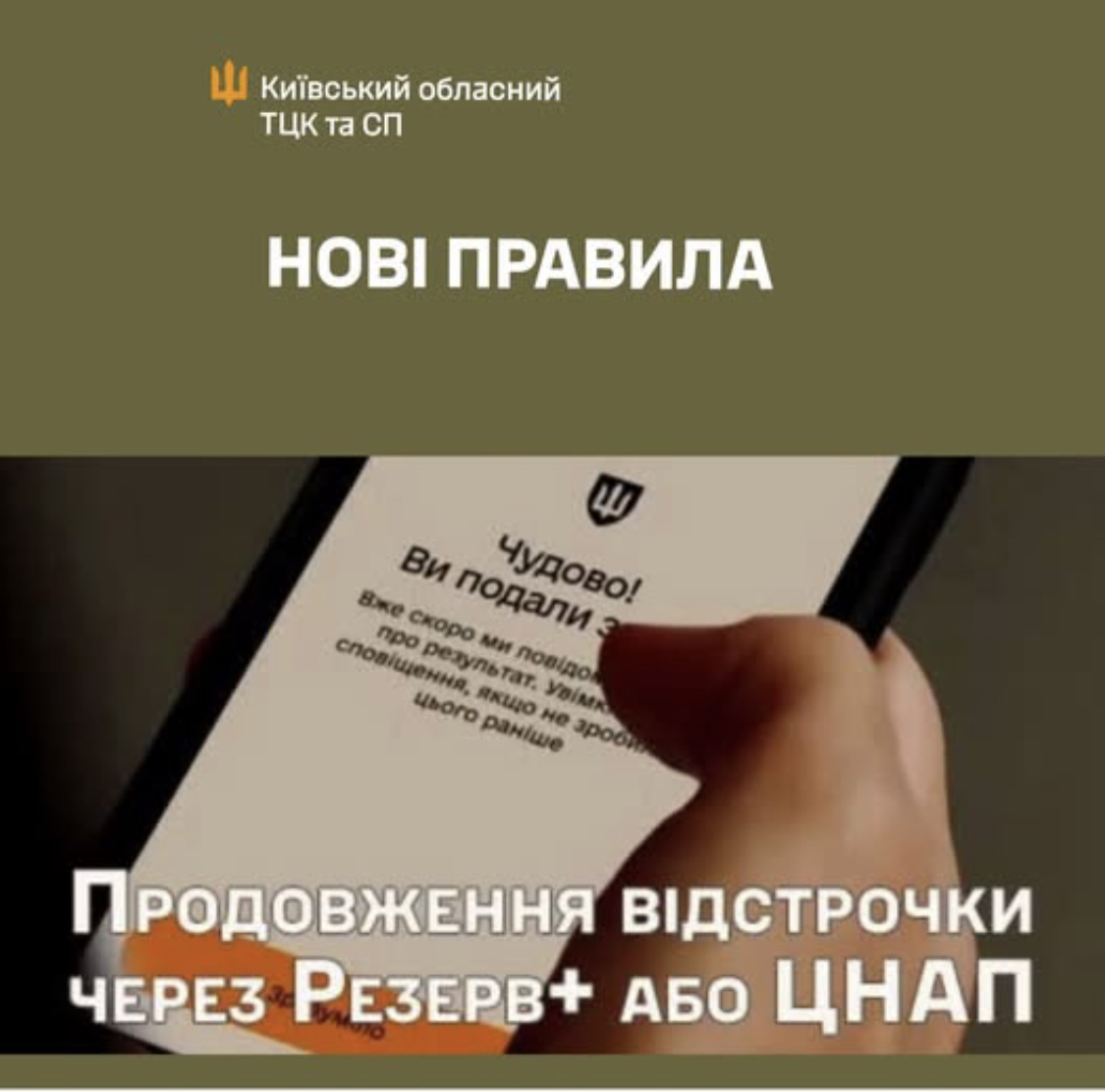 Звертаємо Вашу Увагу, що 9 типів відстрочок вже можна також оформити онлайн у застосунку Резерв+.