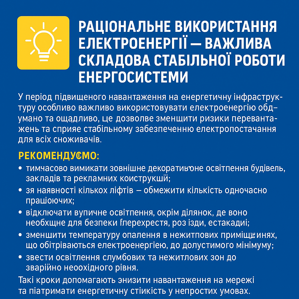Раціональне використання електроенергії — важлива складова стабільної роботи енергосистеми